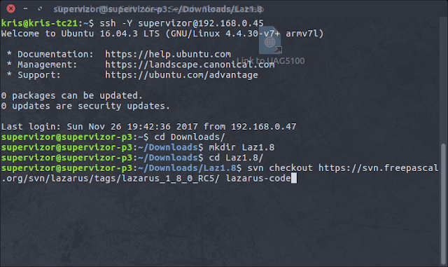 On my Raspbery Pi board I use Ubuntu 16.04 with Mate Desktop. It is really just like a regular Ubuntu Desktop, not much particularities like on Ubuntu Touch. So, the use case here is really pretty much exactly same as it is on Ubuntu Desktop. So I will show you few screens of getting Lazarus1.8 built here, but I will provide more detail about this process in the next scenario for Ubuntu Touch instead. So here we go: