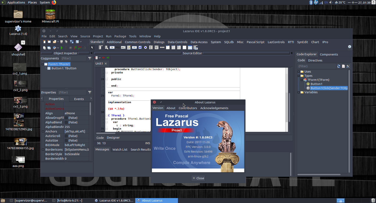Lastly, below is (actually uploaded from Raspberry Pi) actual screen showing Lazarus IDE on the Raspberry Pi connected monitor in Ubuntu Mate Desktop: