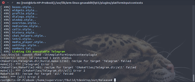 5:00 am, Nov 8th 2017: failed at the exactly same stage. And also it was when I realized that all the QT rebuilding was totally unneccesary, because it did not affect in any way the build configuration. The libfcitxplatforminputcontextplugin.so was being defined somewhere in the main build configuration. I really should not have thought that repeating steps for QT building but skipping the plugins steps will change the build command line. Unless off course some further setps after building QT, that I did not do. Anyways, I started to think, and also I found this page that talks just that very library problem in Telegram on Linux: