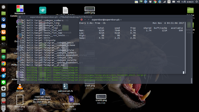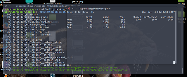 Clearly I was not goign to build Telgram on pi board, due to... emoji! So I had to start thinking out of the box. My first thought was to quickly set up qemu-system-arm container to build inside it on an emulated ARM system. Just that it wasn't a quick way to go. Nor was it a good way either. It was a slow way because I'd need to prep all the prerequisites again, all the downloading, configuring, and pre-building.... while on the pi board it was almost all good except for the emoji part. Neither it was a good way, because qemu-system-arm had a design limitation of only being able to supply 256MB of RAM to the emulated container, effectively making the emulated ARM slower from the actual ARM even on the core i5 laptop.The better way was what some call an architectural chroot. It actually was going to allow me to emulate ARM system booted off my actual SD card taken off my pi board, with all the stuff there ready for typing "make" and hitting enter. Actually, I used dd to ghost my pi board SD card into an image file, that I put on my laptop's SSD hard drive. Much faster to work in chroot that way. I mounted the image and I just needed a tiny bit of preparation. I needed to add into that image a special kind of magic: qemu-user-static. It will sit in front of the kernel and emulate machine code calls between x86 and ARM architectures on the fly. A great read about this is here: http://sentryytech.blogspot.tw/2013/02/faster-compiling-on-emulated-raspberry.html